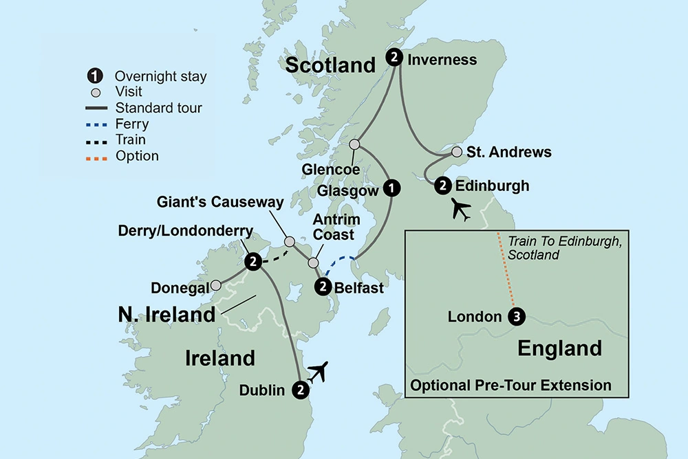 From rugged natural beauty to vibrant and historical cities, the diverse charms of Scotland and Ireland await.